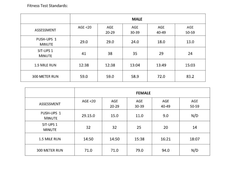 FITNESS TEST STANDARDS